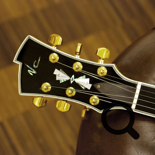With Sapphire, I wanted to take the archtop in a different direction, and try to move away from the traditional punchy, percussive and ‘harsher’ sound, with a different bracing style and larger soundholes. The end result is a cross between the archtop sound when played hard and the warmer tones of a flattop acoustic with a softer playing style, or even fingerstyle. The standard version of Sapphire is made with high grade and beautifully figured woods, but very sparse appointments, no body, fingerboard or headstock binding, to let the beauty of the woods shine. Options like wood bindings, inlays or various colour finishes are of course possible, as is the choice of a pickup system suited to your playing style.