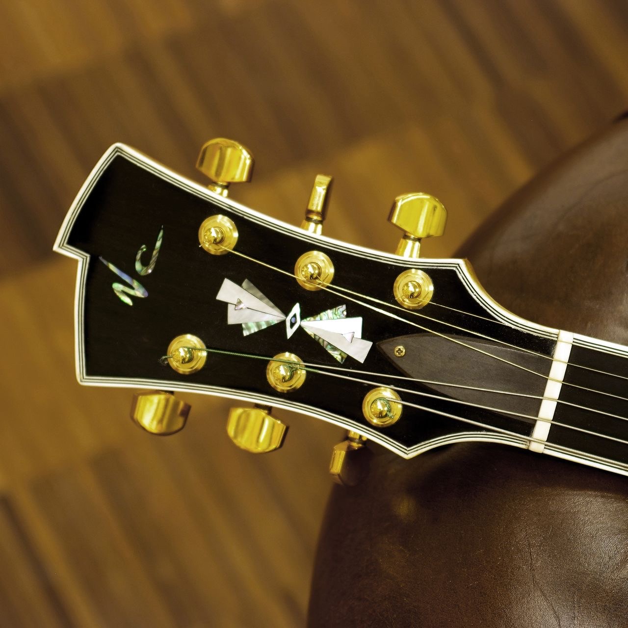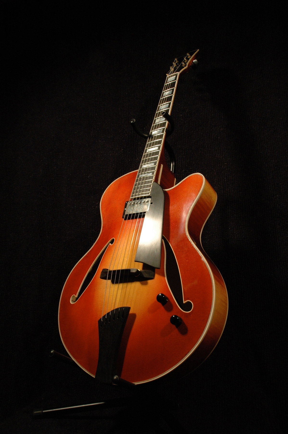-handmade ebony bridge, pickguard and tailpiece